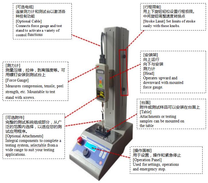 *測(cè)力計(jì)的量程可選,電纜和測(cè)試夾具單獨(dú)銷售: